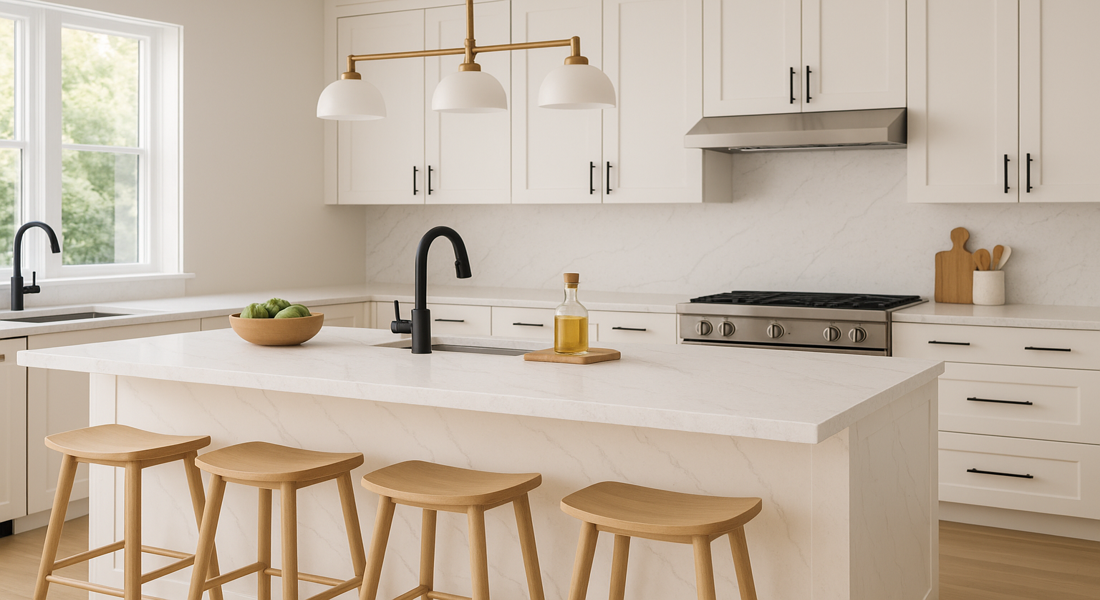 White quartz with golden and grey veins countertops with grey veins offer a stunning aesthetic that combines the timeless elegance of white with the subtle sophistication of grey veining. Here’s a closer look at their beauty
